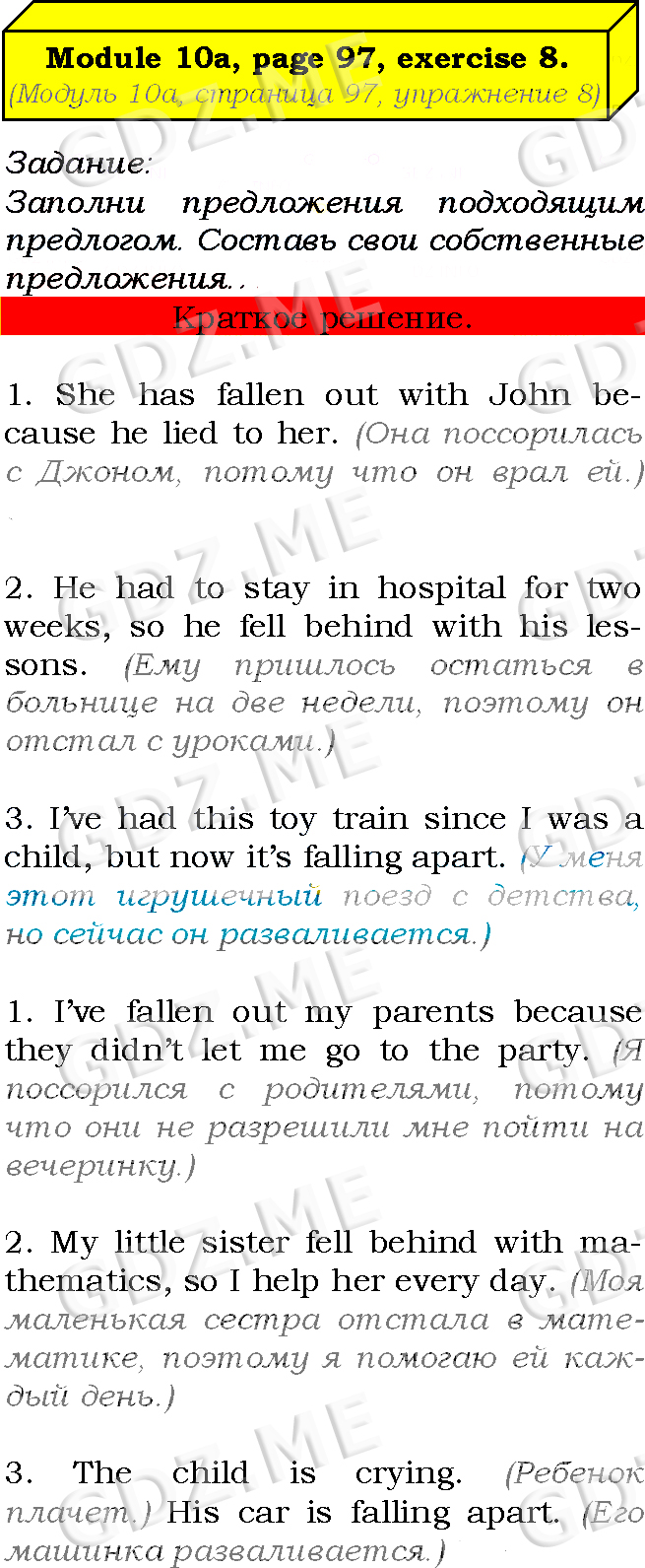 Подробный вариант решения из решебника (ГДЗ): Страница номер 97-10a-8 (Module 9. Shopping time. Module 10. Healthy body, healthy mind. Страница 97) по предмету Английский язык, за 7 класс, авторы учебника Ю.Е. Ваулина, Д. Дули, О.Е. Подолянко, В. Эванс.