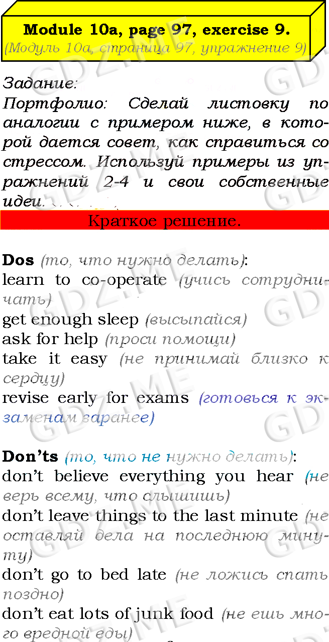 Подробный вариант решения из решебника (ГДЗ): Страница номер 97-10a-9 (Module 9. Shopping time. Module 10. Healthy body, healthy mind. Страница 97) по предмету Английский язык, за 7 класс, авторы учебника Ю.Е. Ваулина, Д. Дули, О.Е. Подолянко, В. Эванс.
