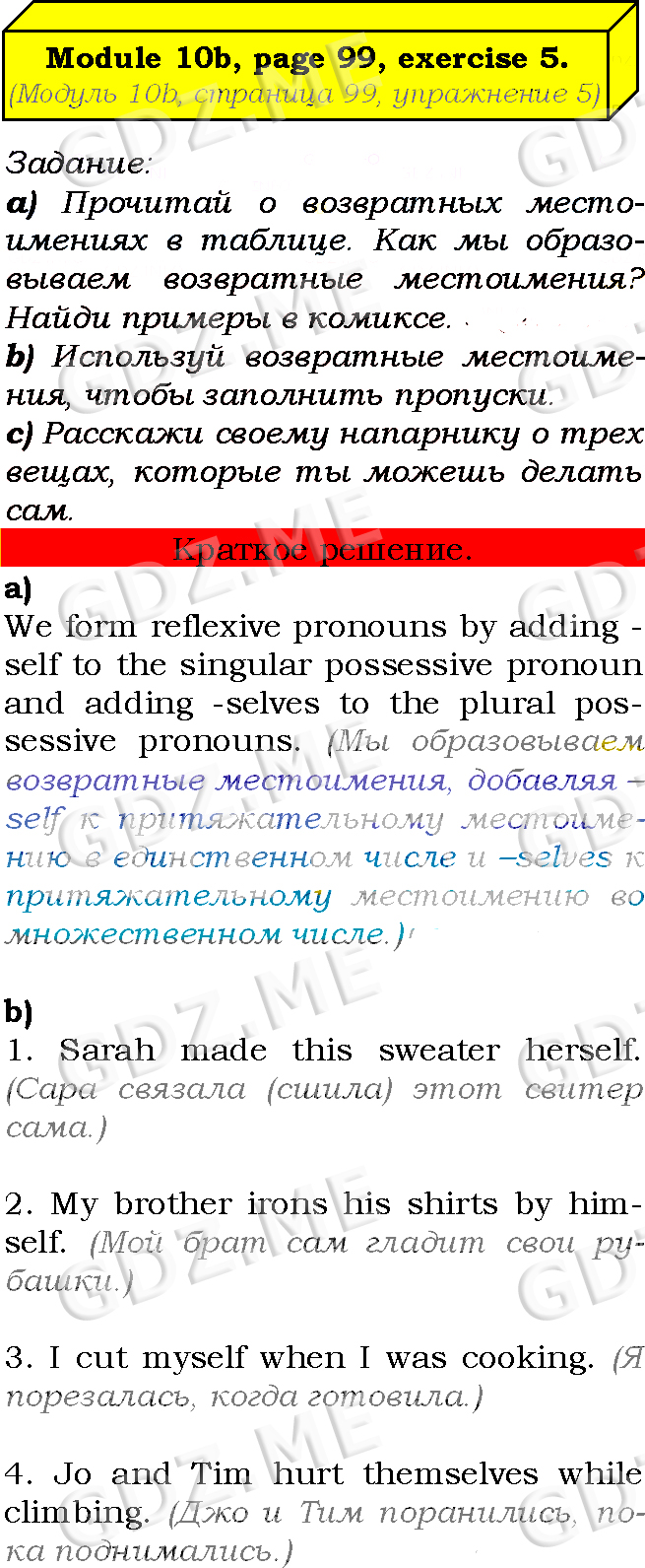 Подробный вариант решения из решебника (ГДЗ): Страница номер 99-10b-5 (Module 9. Shopping time. Module 10. Healthy body, healthy mind. Страница 99) по предмету Английский язык, за 7 класс, авторы учебника Ю.Е. Ваулина, Д. Дули, О.Е. Подолянко, В. Эванс.