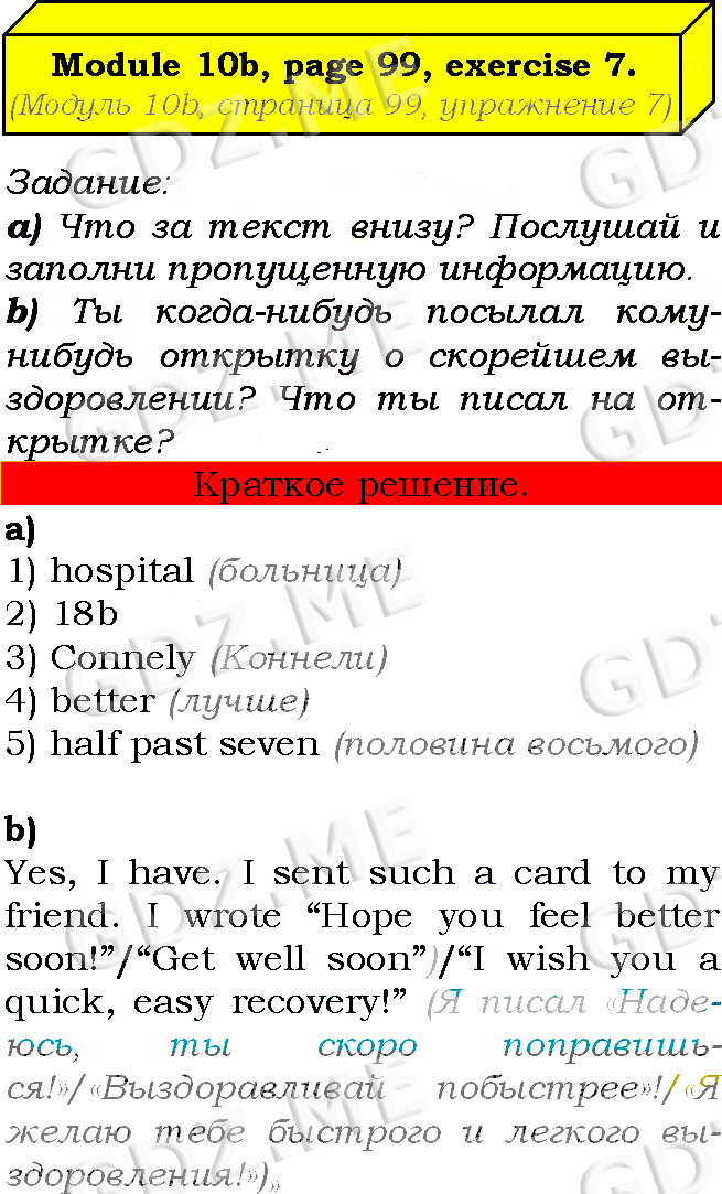 Подробный вариант решения из решебника (ГДЗ): Страница номер 99-10b-7 (Module 9. Shopping time. Module 10. Healthy body, healthy mind. Страница 99) по предмету Английский язык, за 7 класс, авторы учебника Ю.Е. Ваулина, Д. Дули, О.Е. Подолянко, В. Эванс.