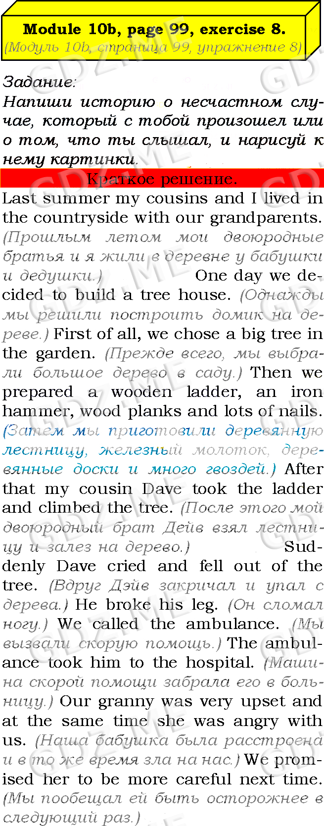 Подробный вариант решения из решебника (ГДЗ): Страница номер 99-10b-8 (Module 9. Shopping time. Module 10. Healthy body, healthy mind. Страница 99) по предмету Английский язык, за 7 класс, авторы учебника Ю.Е. Ваулина, Д. Дули, О.Е. Подолянко, В. Эванс.