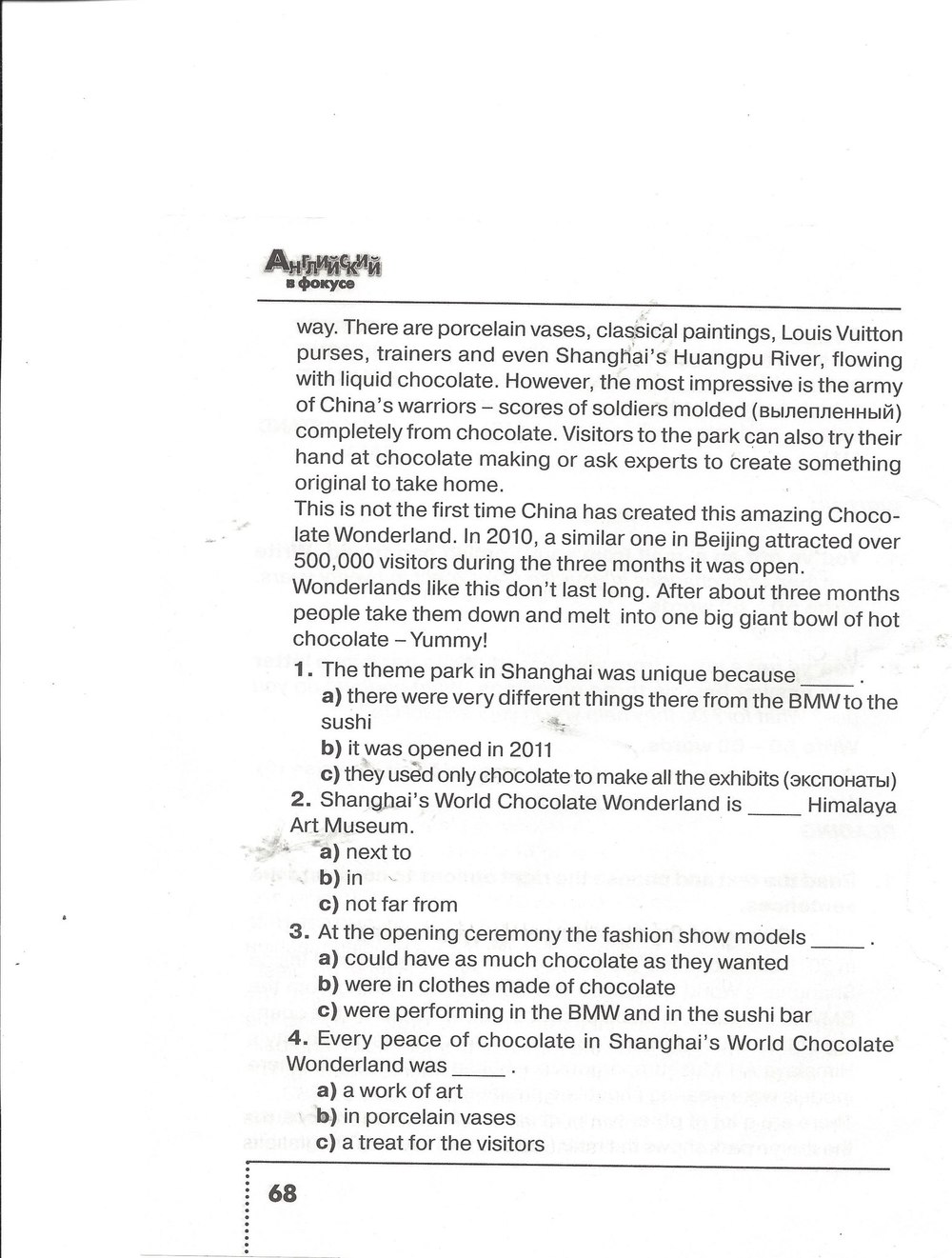 Подробный вариант решения из решебника (ГДЗ): Страница номер 68 по предмету Английский язык, за 7 класс, авторы учебника Ваулина Ю.Е., Подоляко О.Е..