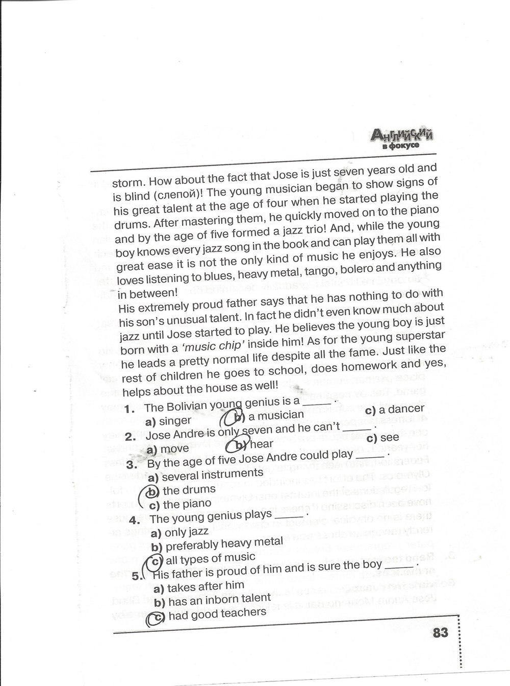 Подробный вариант решения из решебника (ГДЗ): Страница номер 83 по предмету Английский язык, за 7 класс, авторы учебника Ваулина Ю.Е., Подоляко О.Е..