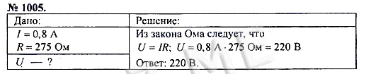 Подробный вариант решения из решебника (ГДЗ): Номер номер 1005 (НОМЕРА РЕШЕНИЙ) по предмету Физика, за 7 класс, авторы учебника А.В. Пёрышкин.