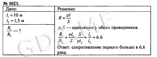 Подробный вариант решения из решебника (ГДЗ): Номер номер 1021 (НОМЕРА РЕШЕНИЙ) по предмету Физика, за 7 класс, авторы учебника А.В. Пёрышкин.