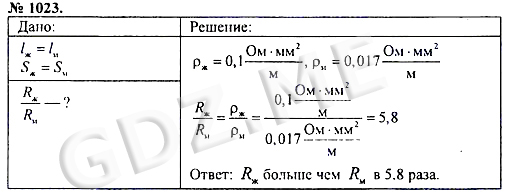 Подробный вариант решения из решебника (ГДЗ): Номер номер 1023 (НОМЕРА РЕШЕНИЙ) по предмету Физика, за 7 класс, авторы учебника А.В. Пёрышкин.