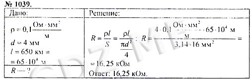 Подробный вариант решения из решебника (ГДЗ): Номер номер 1039 (НОМЕРА РЕШЕНИЙ) по предмету Физика, за 7 класс, авторы учебника А.В. Пёрышкин.