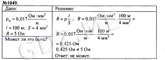 Подробный вариант решения из решебника (ГДЗ): Номер номер 1049 (НОМЕРА РЕШЕНИЙ) по предмету Физика, за 7 класс, авторы учебника А.В. Пёрышкин.