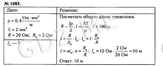 Подробный вариант решения из решебника (ГДЗ): Номер номер 1085 (НОМЕРА РЕШЕНИЙ) по предмету Физика, за 7 класс, авторы учебника А.В. Пёрышкин.