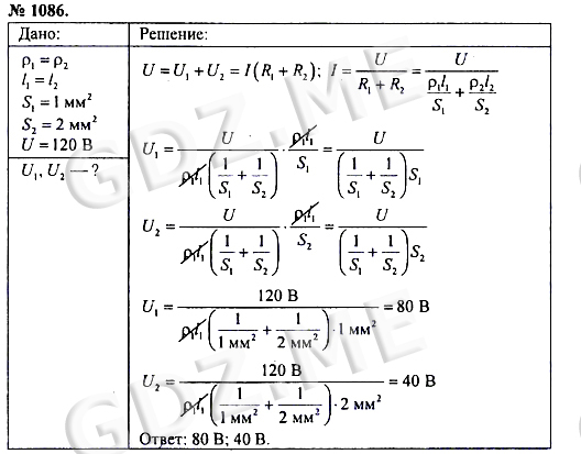 Подробный вариант решения из решебника (ГДЗ): Номер номер 1086 (НОМЕРА РЕШЕНИЙ) по предмету Физика, за 7 класс, авторы учебника А.В. Пёрышкин.