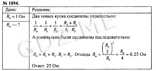 Подробный вариант решения из решебника (ГДЗ): Номер номер 1094 (НОМЕРА РЕШЕНИЙ) по предмету Физика, за 7 класс, авторы учебника А.В. Пёрышкин.