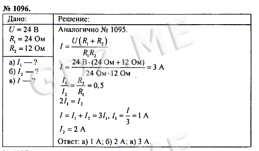 Подробный вариант решения из решебника (ГДЗ): Номер номер 1096 (НОМЕРА РЕШЕНИЙ) по предмету Физика, за 7 класс, авторы учебника А.В. Пёрышкин.