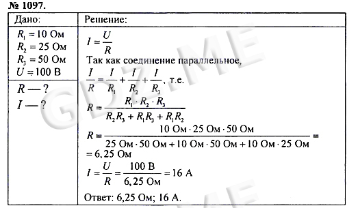 Подробный вариант решения из решебника (ГДЗ): Номер номер 1097 (НОМЕРА РЕШЕНИЙ) по предмету Физика, за 7 класс, авторы учебника А.В. Пёрышкин.