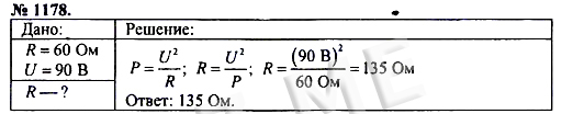 Подробный вариант решения из решебника (ГДЗ): Номер номер 1178 (НОМЕРА РЕШЕНИЙ) по предмету Физика, за 7 класс, авторы учебника А.В. Пёрышкин.