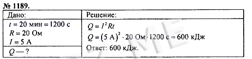 Подробный вариант решения из решебника (ГДЗ): Номер номер 1189 (НОМЕРА РЕШЕНИЙ) по предмету Физика, за 7 класс, авторы учебника А.В. Пёрышкин.