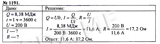 Подробный вариант решения из решебника (ГДЗ): Номер номер 1191 (НОМЕРА РЕШЕНИЙ) по предмету Физика, за 7 класс, авторы учебника А.В. Пёрышкин.