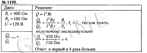 Подробный вариант решения из решебника (ГДЗ): Номер номер 1195 (НОМЕРА РЕШЕНИЙ) по предмету Физика, за 7 класс, авторы учебника А.В. Пёрышкин.