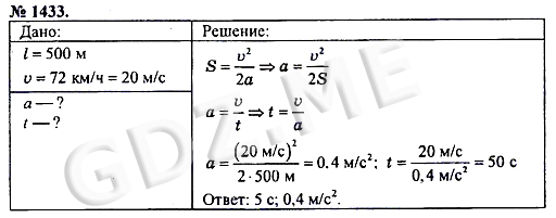 Подробный вариант решения из решебника (ГДЗ): Номер номер 1433 (НОМЕРА РЕШЕНИЙ) по предмету Физика, за 7 класс, авторы учебника А.В. Пёрышкин.