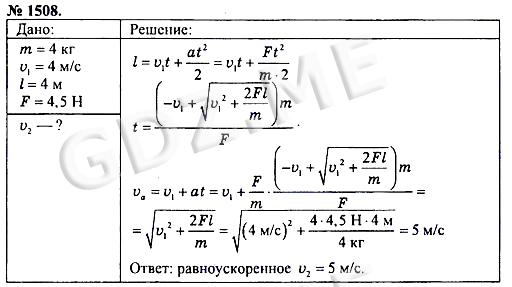Подробный вариант решения из решебника (ГДЗ): Номер номер 1508 (НОМЕРА РЕШЕНИЙ) по предмету Физика, за 7 класс, авторы учебника А.В. Пёрышкин.
