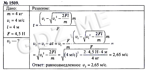 Подробный вариант решения из решебника (ГДЗ): Номер номер 1509 (НОМЕРА РЕШЕНИЙ) по предмету Физика, за 7 класс, авторы учебника А.В. Пёрышкин.