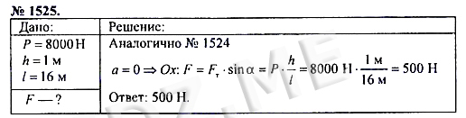 Подробный вариант решения из решебника (ГДЗ): Номер номер 1525 (НОМЕРА РЕШЕНИЙ) по предмету Физика, за 7 класс, авторы учебника А.В. Пёрышкин.