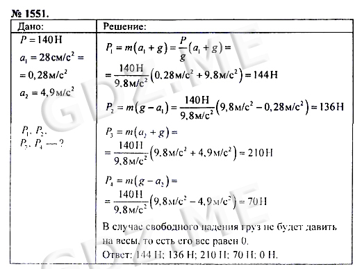 Подробный вариант решения из решебника (ГДЗ): Номер номер 1551 (НОМЕРА РЕШЕНИЙ) по предмету Физика, за 7 класс, авторы учебника А.В. Пёрышкин.