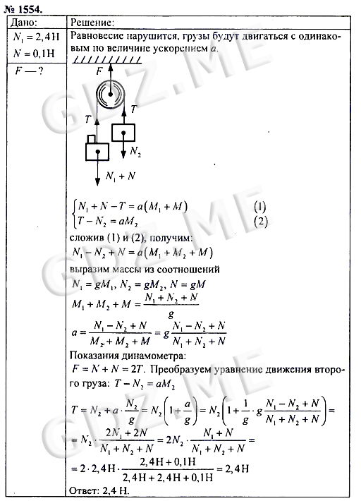 Подробный вариант решения из решебника (ГДЗ): Номер номер 1554 (НОМЕРА РЕШЕНИЙ) по предмету Физика, за 7 класс, авторы учебника А.В. Пёрышкин.