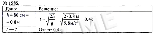 Подробный вариант решения из решебника (ГДЗ): Номер номер 1585 (НОМЕРА РЕШЕНИЙ) по предмету Физика, за 7 класс, авторы учебника А.В. Пёрышкин.