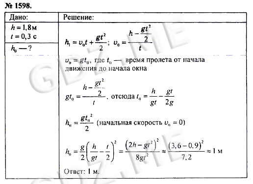 Подробный вариант решения из решебника (ГДЗ): Номер номер 1598 (НОМЕРА РЕШЕНИЙ) по предмету Физика, за 7 класс, авторы учебника А.В. Пёрышкин.