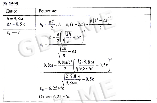 Подробный вариант решения из решебника (ГДЗ): Номер номер 1599 (НОМЕРА РЕШЕНИЙ) по предмету Физика, за 7 класс, авторы учебника А.В. Пёрышкин.