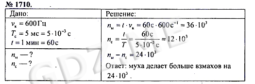 Подробный вариант решения из решебника (ГДЗ): Номер номер 1710 (НОМЕРА РЕШЕНИЙ) по предмету Физика, за 7 класс, авторы учебника А.В. Пёрышкин.