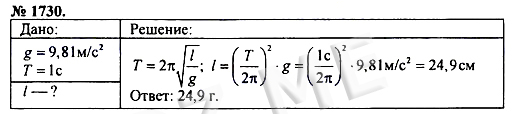 Подробный вариант решения из решебника (ГДЗ): Номер номер 1730 (НОМЕРА РЕШЕНИЙ) по предмету Физика, за 7 класс, авторы учебника А.В. Пёрышкин.