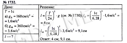Подробный вариант решения из решебника (ГДЗ): Номер номер 1732 (НОМЕРА РЕШЕНИЙ) по предмету Физика, за 7 класс, авторы учебника А.В. Пёрышкин.