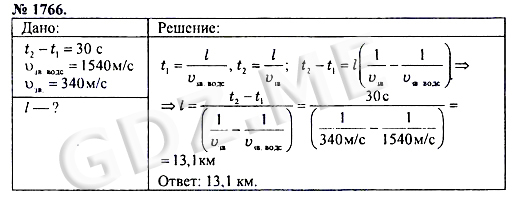 Подробный вариант решения из решебника (ГДЗ): Номер номер 1766 (НОМЕРА РЕШЕНИЙ) по предмету Физика, за 7 класс, авторы учебника А.В. Пёрышкин.