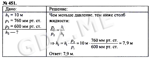 Подробный вариант решения из решебника (ГДЗ): Номер номер 451 (НОМЕРА РЕШЕНИЙ) по предмету Физика, за 7 класс, авторы учебника А.В. Пёрышкин.