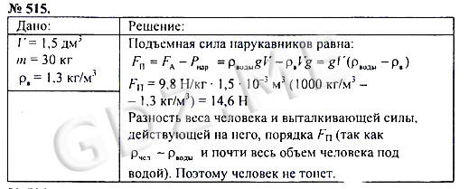 Подробный вариант решения из решебника (ГДЗ): Номер номер 515 (НОМЕРА РЕШЕНИЙ) по предмету Физика, за 7 класс, авторы учебника А.В. Пёрышкин.