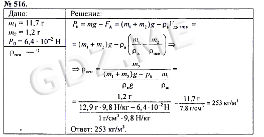 Подробный вариант решения из решебника (ГДЗ): Номер номер 516 (НОМЕРА РЕШЕНИЙ) по предмету Физика, за 7 класс, авторы учебника А.В. Пёрышкин.