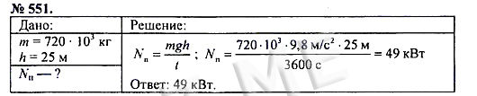 Подробный вариант решения из решебника (ГДЗ): Номер номер 551 (НОМЕРА РЕШЕНИЙ) по предмету Физика, за 7 класс, авторы учебника А.В. Пёрышкин.