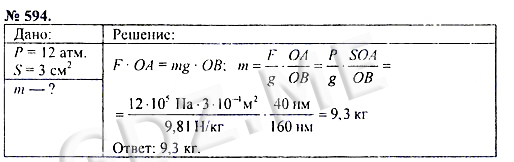 Подробный вариант решения из решебника (ГДЗ): Номер номер 594 (НОМЕРА РЕШЕНИЙ) по предмету Физика, за 7 класс, авторы учебника А.В. Пёрышкин.