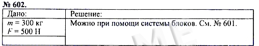 Подробный вариант решения из решебника (ГДЗ): Номер номер 602 (НОМЕРА РЕШЕНИЙ) по предмету Физика, за 7 класс, авторы учебника А.В. Пёрышкин.