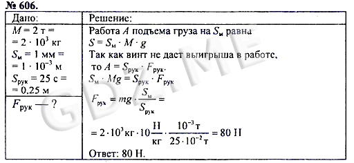 Подробный вариант решения из решебника (ГДЗ): Номер номер 606 (НОМЕРА РЕШЕНИЙ) по предмету Физика, за 7 класс, авторы учебника А.В. Пёрышкин.