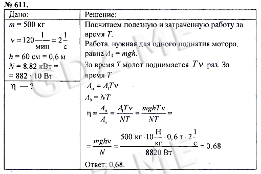 Подробный вариант решения из решебника (ГДЗ): Номер номер 611 (НОМЕРА РЕШЕНИЙ) по предмету Физика, за 7 класс, авторы учебника А.В. Пёрышкин.