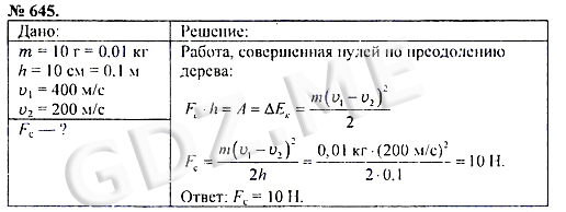 Подробный вариант решения из решебника (ГДЗ): Номер номер 645 (НОМЕРА РЕШЕНИЙ) по предмету Физика, за 7 класс, авторы учебника А.В. Пёрышкин.