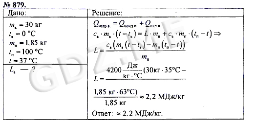 Подробный вариант решения из решебника (ГДЗ): Номер номер 879 (НОМЕРА РЕШЕНИЙ) по предмету Физика, за 7 класс, авторы учебника А.В. Пёрышкин.