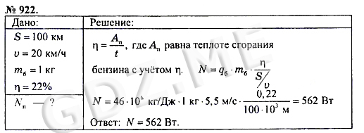 Подробный вариант решения из решебника (ГДЗ): Номер номер 922 (НОМЕРА РЕШЕНИЙ) по предмету Физика, за 7 класс, авторы учебника А.В. Пёрышкин.