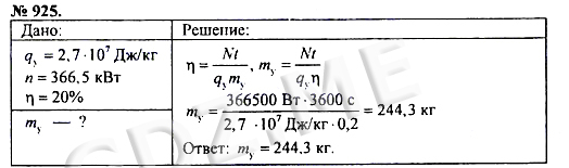 Подробный вариант решения из решебника (ГДЗ): Номер номер 925 (НОМЕРА РЕШЕНИЙ) по предмету Физика, за 7 класс, авторы учебника А.В. Пёрышкин.