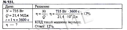 Подробный вариант решения из решебника (ГДЗ): Номер номер 931 (НОМЕРА РЕШЕНИЙ) по предмету Физика, за 7 класс, авторы учебника А.В. Пёрышкин.
