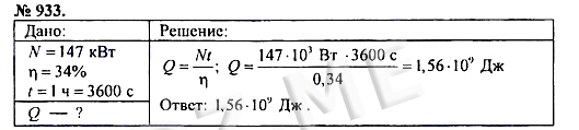 Подробный вариант решения из решебника (ГДЗ): Номер номер 933 (НОМЕРА РЕШЕНИЙ) по предмету Физика, за 7 класс, авторы учебника А.В. Пёрышкин.