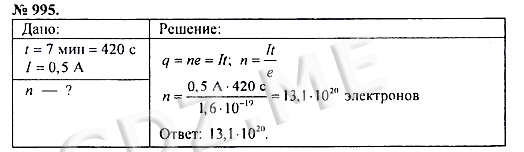 Подробный вариант решения из решебника (ГДЗ): Номер номер 995 (НОМЕРА РЕШЕНИЙ) по предмету Физика, за 7 класс, авторы учебника А.В. Пёрышкин.