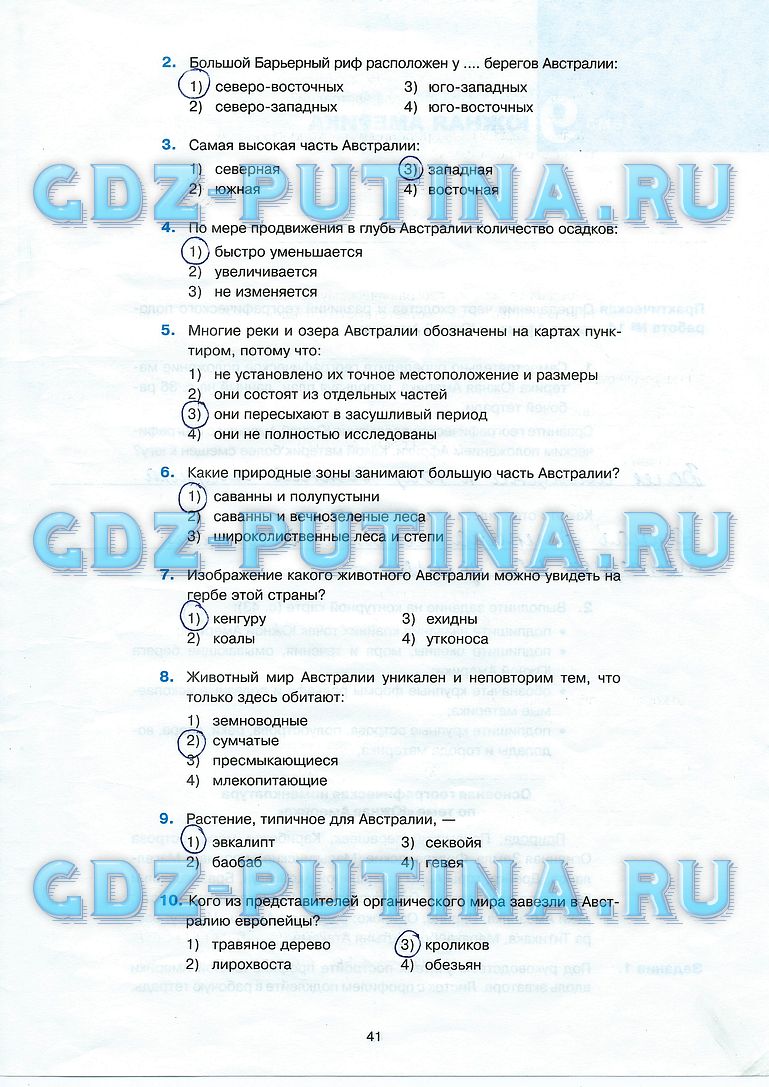 Подробный вариант решения из решебника (ГДЗ): Страница номер 41 по предмету География, за 7 класс, авторы учебника Баринова И.И., Суслов В.Г..